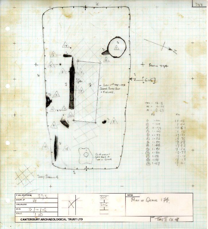 Plan of grave 174 - objects 7 and 8: click to enlarge (Image copyright Canterbury Archaeological Trust)