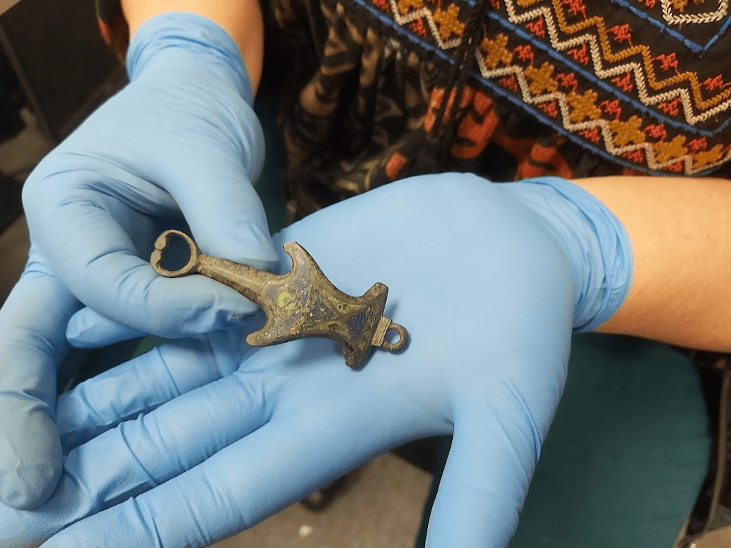 There were around 29 spearheads uncovered during the excavation at The Meads: these are always found in male graves. Conservation has presented us with the usual mineral preserved organics on these objects. Wood is usually found preserved in the socketed ferrule where the spearhead attaches to the wooden shaft, and grass has been discovered on … Continue reading spearhead