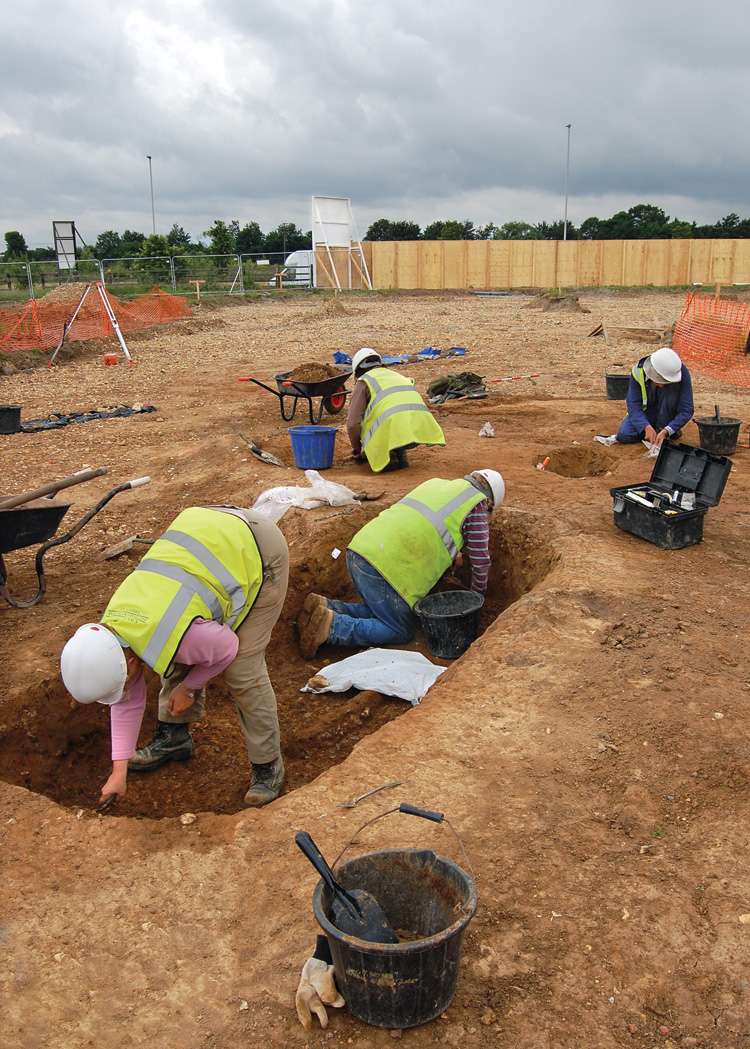 By the time the excavation was completed in December 2008, 227 Anglo-Saxon inhumations and 2 cremations had been excavated. The majority were inhumations, although a small number of urned cremations were also recovered. Bone preservation was very poor, with a few long bones and teeth surviving in a very fragile state; most burials contained no bone at all.